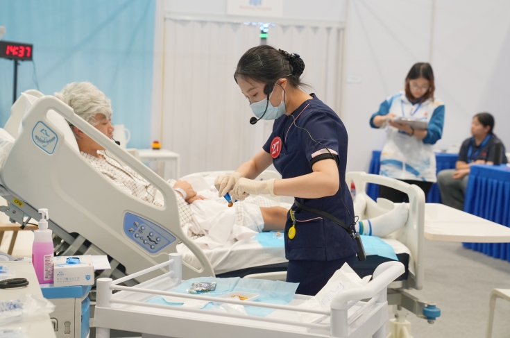 优异成绩的背后,凝聚着参赛团队的心血与汗水,更离不开学院从赛前筹备到后勤保障给予的大力支持。比赛期间,学院党委书记邢军,副院长匡照忠,党委委员、宣传统战部部长兼党政办公室主任续飞,健康管理系及教务处(竞赛办)负责同志观摩了比赛现场,并看望慰问了参赛团队,为选手们安心备赛、全力冲刺提供了坚实后盾。