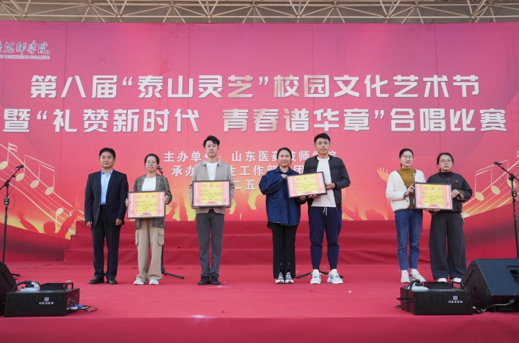 经过精彩比拼,最终健康管理系《若月亮没来》获得一等奖,公共教育学院《亲爱的你啊》、凤天路分校区《错位时空》获得二等奖,制药工程学院《国家》、药品商贸学院《如愿》、中药学院《万疆》、生物与食品科学系《中国》获得三等奖。学院领导为获奖队伍颁奖。