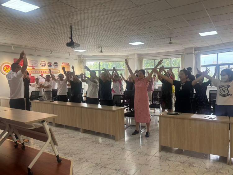 本次活动由我校体育教师郑磊担任主讲,作为泰安市科协文化书院优秀师资代表,他以增强中老年日常体育锻炼为目的,为长安社区的居民带来了一堂生动的体育课。课堂上郑磊老师带领大家从热身活动入手,安排了十几个适合增强中老年人下肢力量的练习,练习结束后还带领大家拉伸了全身的肌肉。到场居民都积极参与,现场气氛热烈,欢声笑语不断。