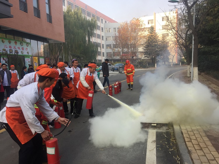 保卫处处长夏广勇重点围绕“四个能力”、“一懂三会”进行了深入细致的讲解,现场演示了手提式灭火器和室内消火栓的构造和使用方法。