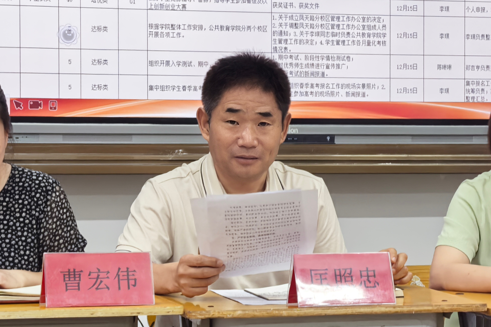 公共教育学院主要负责同志分别通报了上半年各自分工工作情况,并对暑假工作进行了安排和部署。全体教职工集体逐项学习了公共教育学院2025年重点工作任务清单,明确了任务责任人和任务协同人,进一步统一了思想,达成全员同心、协调配合推进重点工作任务的共识。