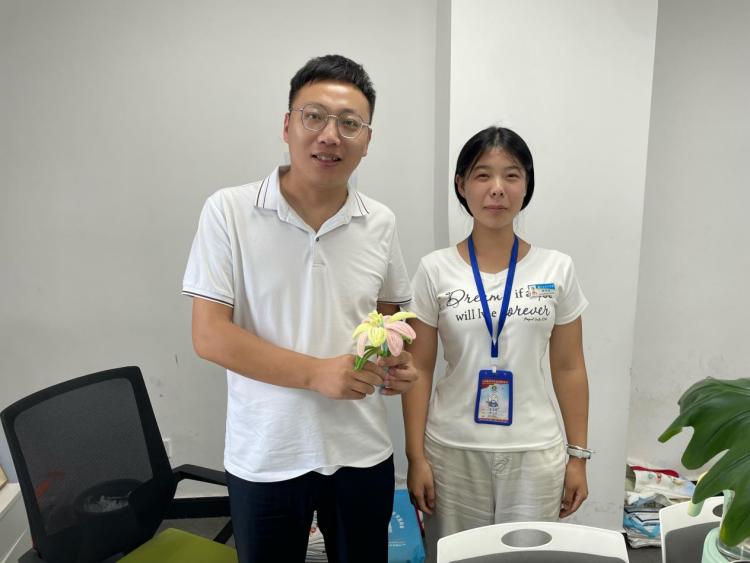 活动当天,同学们纷纷将课间自己亲手制作的礼物送到老师手中:有的送上精心制作的贺卡,内页写满全班同学的真诚祝福;有的献上用彩泥精心塑制的学科特色作品,将抽象的知识化为具象的感恩;更有一束束亲手制作的手工花,栩栩如生,凝聚着学生们的心意。