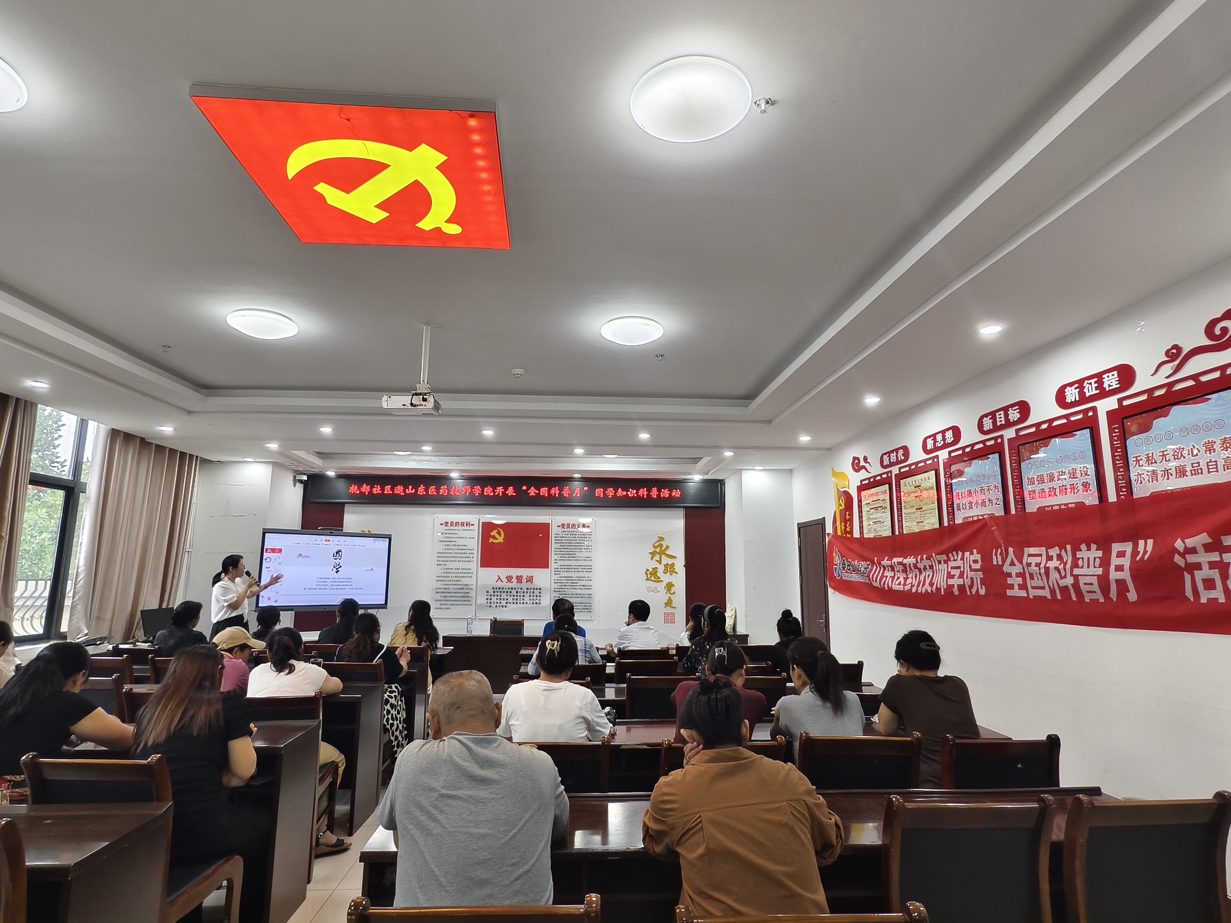 学院特邀公共教育学院教师张智敏担任主讲。作为泰安市科协文化书院优秀师资代表,张老师以清晰的逻辑架构展开讲解:从国学文化总述破题,系统梳理历代主流文学的演进脉络与核心思想的传承谱系,尤其对先秦经典的精髓要义进行了深入浅出的解读。现场互动氛围尤为热烈,居民们踊跃分享感悟、主动提问:年长居民结合人生阅历,畅谈《论语》中“孝悌”“修身” 理念对家庭教育的深远影响;年轻家长则聚焦育儿痛点,请教儿童国学启蒙的有效方法。张老师逐一耐心回应,既推荐《三字经》《道德经》等适合入门的经典读物,更给出 “亲子共读涵养家风”“结合生活场景解读经文” 等极具操作性的建议,赢得阵阵掌声。